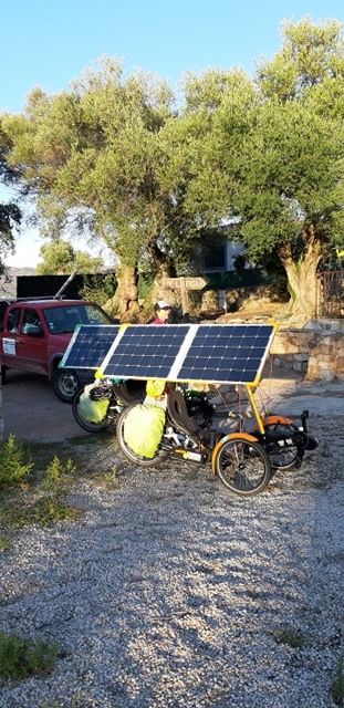 Leur équipement sont des VAE (Vélo à Assistance Electrique) qui se rechargent à l’énergie solaire.